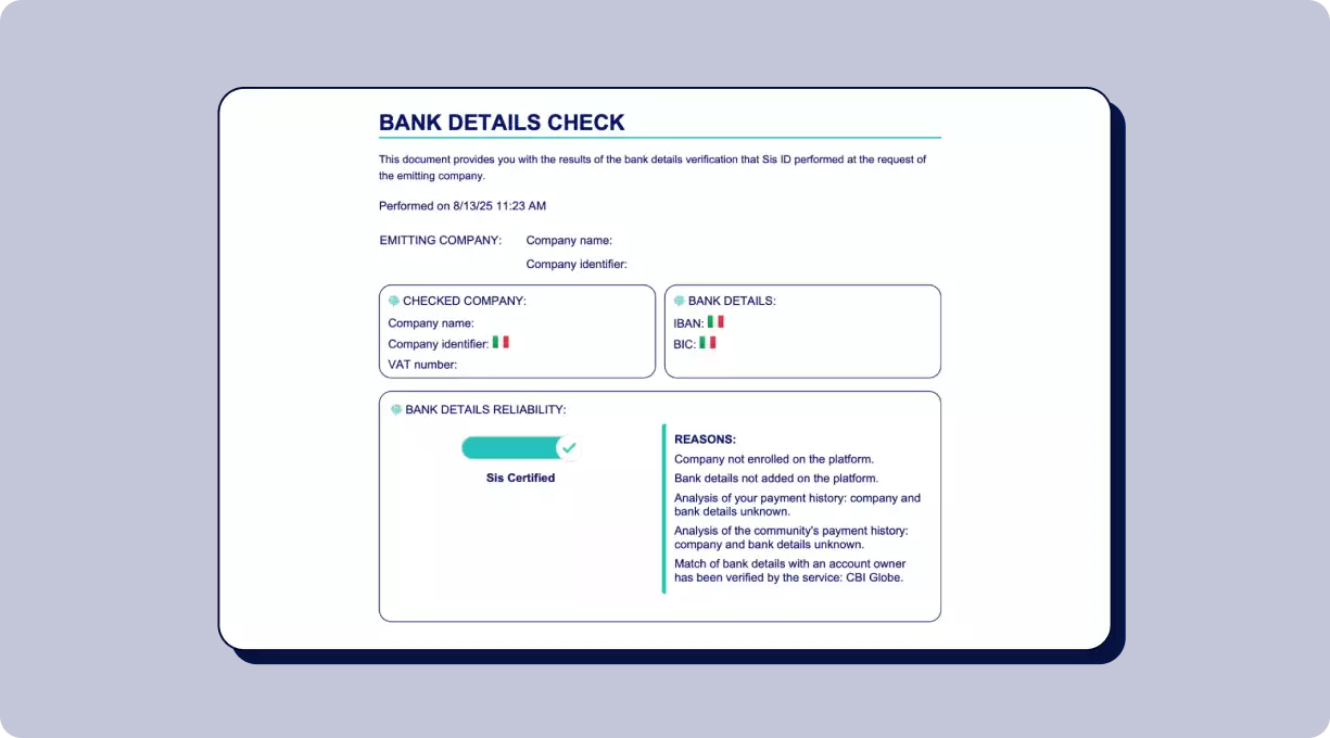 If an automatic check is inconclusive, suppliers can certify their bank details through Sis ID experts directly within OpenCash. This reduces manual workload, shifts responsibility to specialists, and guarantees accurate and efficient verification.
